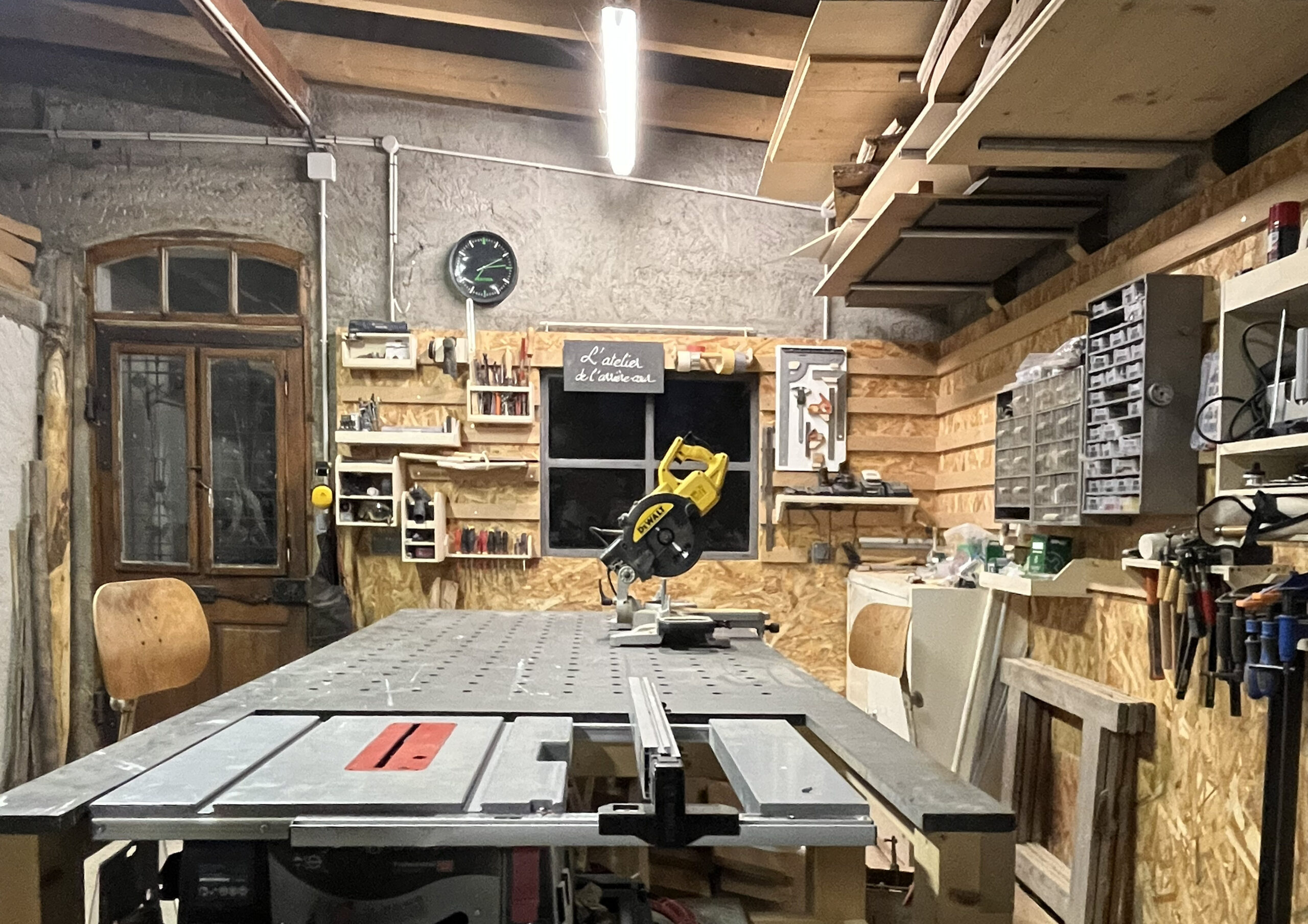 Depuis quelques années, j’ai réveillé une passion longtemps restée en sommeil: la menuiserie. J’ai aménagé l’Atelier de l’Arrière-Cour, un atelier dans mon garage, ouvert sur le jardin qui, au fil du temps, s’est enrichi de nombreux outils.