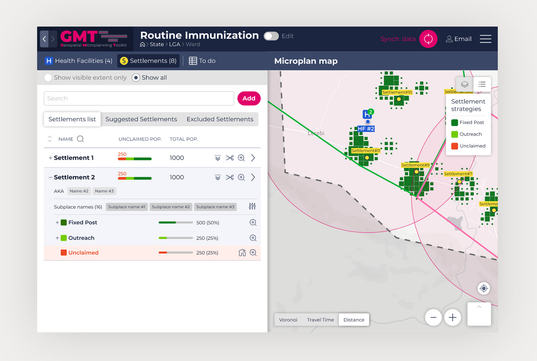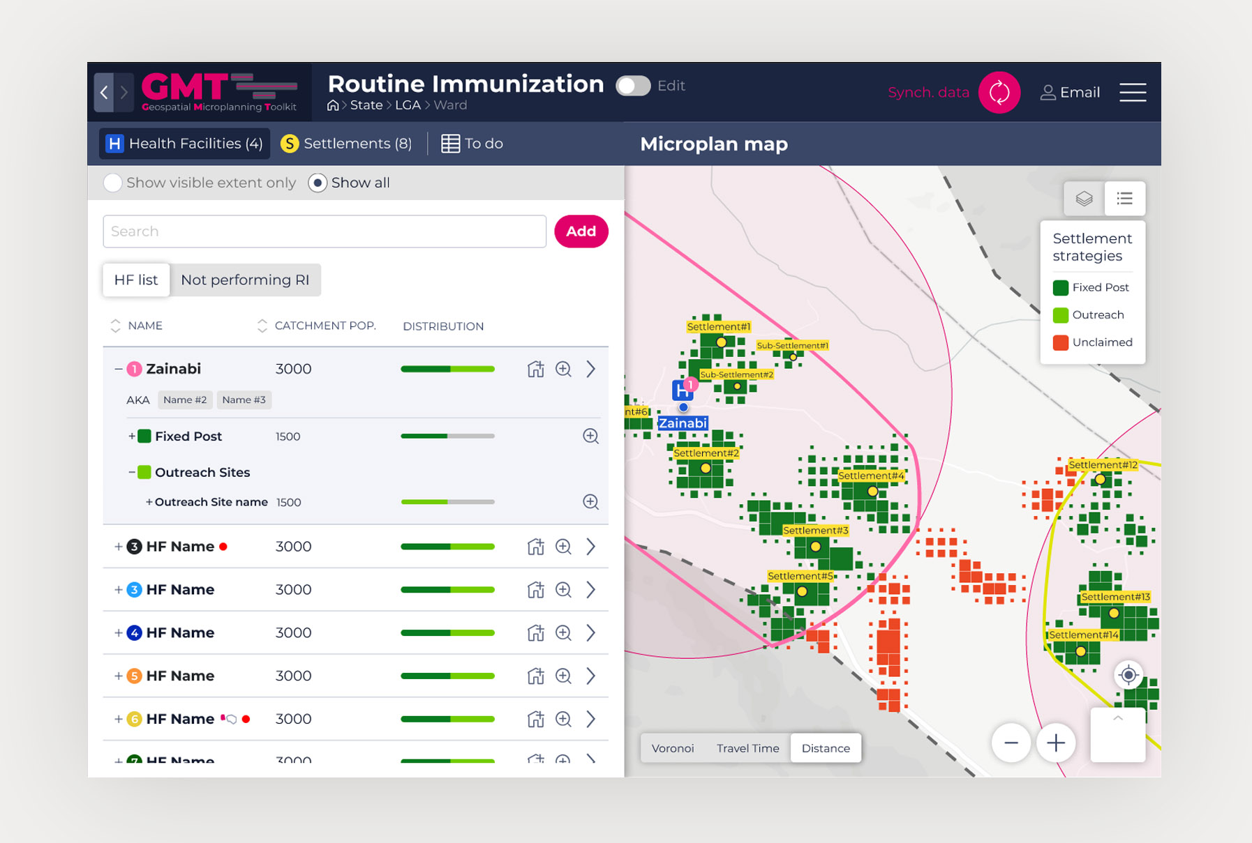Un microplan décrit comment les services de santé sont organisés sur le terrain, en indiquant les zones couvertes, les populations à servir et les ressources nécessaires, souvent à l’aide de cartes dessinées à la main. Mais ces microplans papier, statiques et approximatifs, ne reflètent ni les distances réelles ni les mises à jour géographiques récentes, ce qui peut entraîner des zones sous- ou sur-desservies.